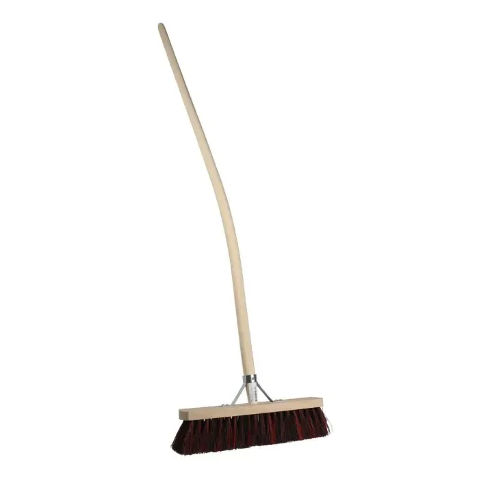 Door de krachtige haren bestaat de kans dat je deze straatbezem ook wel als borstel gebruikt. Hier komt vaak wat meer kracht bij kijken. Om de druk op de gewrichten en spieren te verlagen, is de steel licht gekromd. Door deze kromming werk je makkelijker met een rechte rug. Ook is de kans kleiner dat je jouw schouders overstrekt. Let er ook op dat je jouw handen op een comfortabele manier op de steel plaatst. Zorg bijvoorbeeld dat je jouw handpalm gebruikt om de knopsteel te sturen.